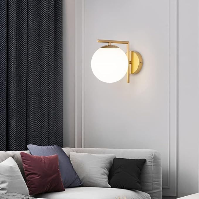 Questa applique da parete ha un design moderno ed elegante, caratterizzato da una struttura in metallo dorato con finitura lsatinata e un diffusore sferico in vetro opalino bianco. La sfera diffonde la luce in modo morbido e uniforme, creando un'illuminazione calda e accogliente. Caratterizzata da un aspetto contemporaneo e minimalista. Ideale per ambienti come il soggiorno o la camera da letto, aggiunge un tocco di raffinatezza e stile all'arredamento.