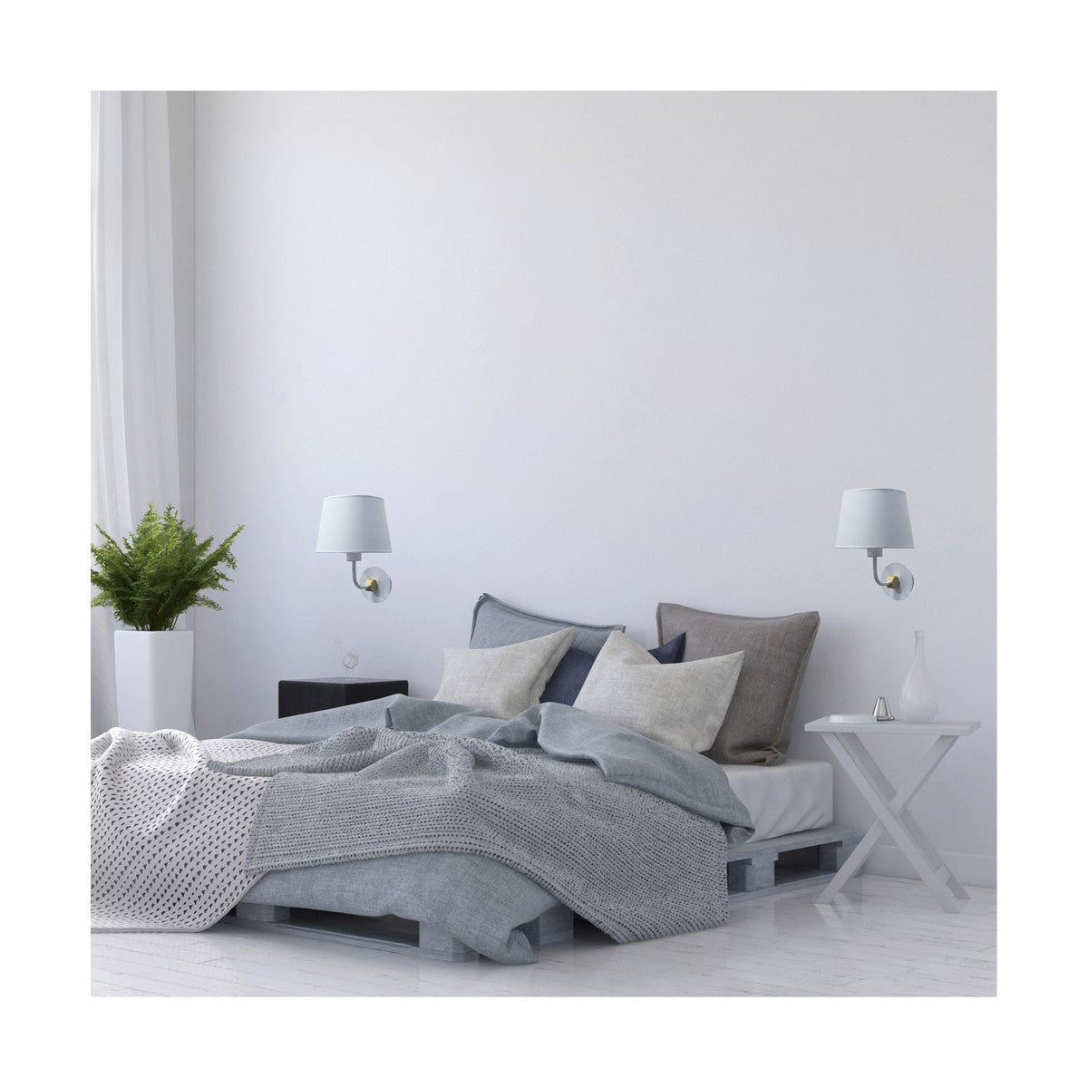 Lampada da parete per corridoi, corridoi e camere da letto. Design minimalista con base in metallo e paralume in tessuto nero. Ha un piccolo dettaglio dorato sulla base. Puoi installare una lampada da parete su ciascun lato del letto come illuminazione.