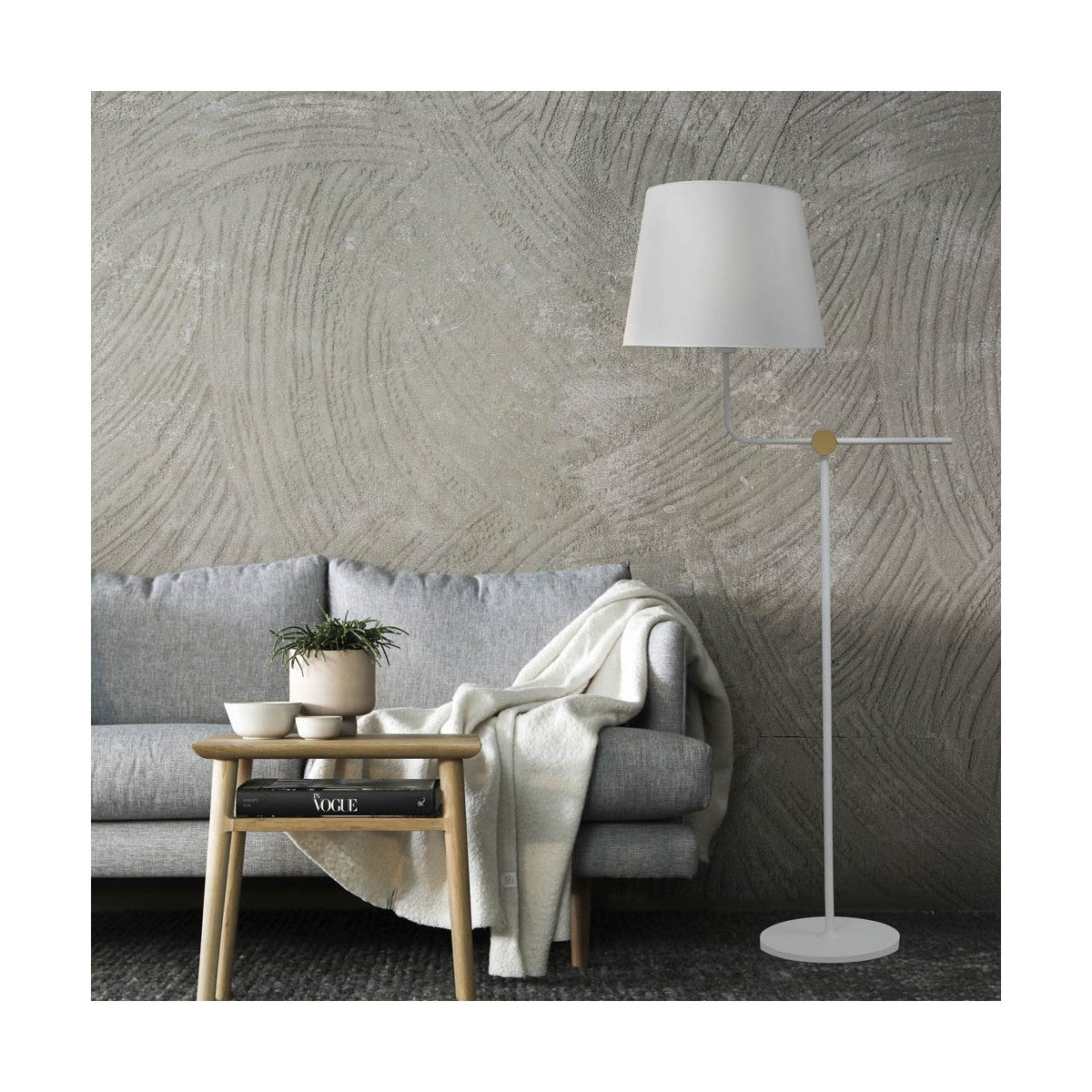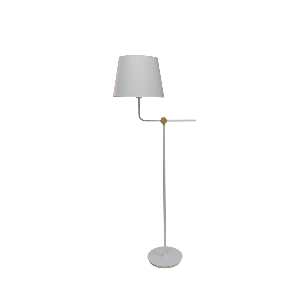Questa è una piantana dal design minimalista, caratterizzata da una struttura sottile in metallo e un paralume tradizionale. La linea moderna è arricchita da un elemento decorativo in ottone che collega il braccio orizzontale alla struttura verticale, donando un tocco elegante. Perfetta per ambienti contemporanei o minimal.