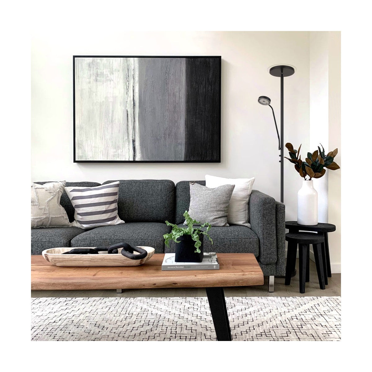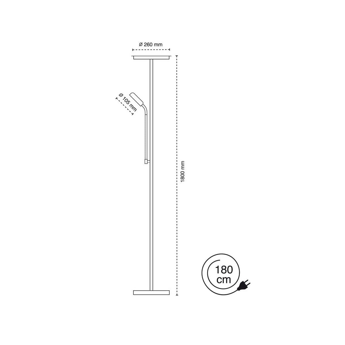 Questa piantana in stile moderno è dotata di una struttura sottile in metallo con finitura di qualità. Presenta due punti luce: un faretto orientabile per la lettura e un diffusore principale posizionato in alto per un'illuminazione diffusa. È ideale per salotti, studi o camere da letto grazie alla sua combinazione di funzionalità ed eleganza.