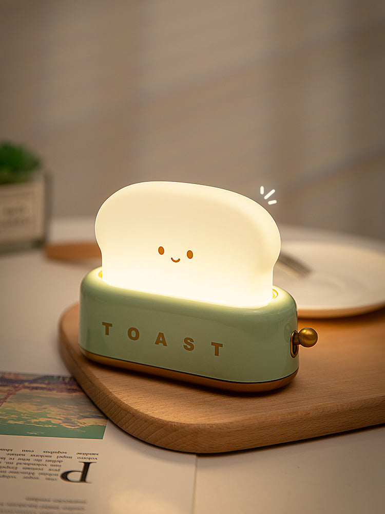 Questa lampada ricaricabile a forma di fetta di pane è un'adorabile aggiunta a qualsiasi spazio. Il suo design unico, con una base che richiama un tostapane e un volto sorridente sulla "fetta", la rende simpatica e decorativa. Dispone di luce LED dimmerabile, che permette di scegliere l'intensità luminosa ideale per creare un'atmosfera accogliente. Portatile e facile da usare, è perfetta come luce notturna o decorazione per scrivanie, camere da letto e soggiorni.