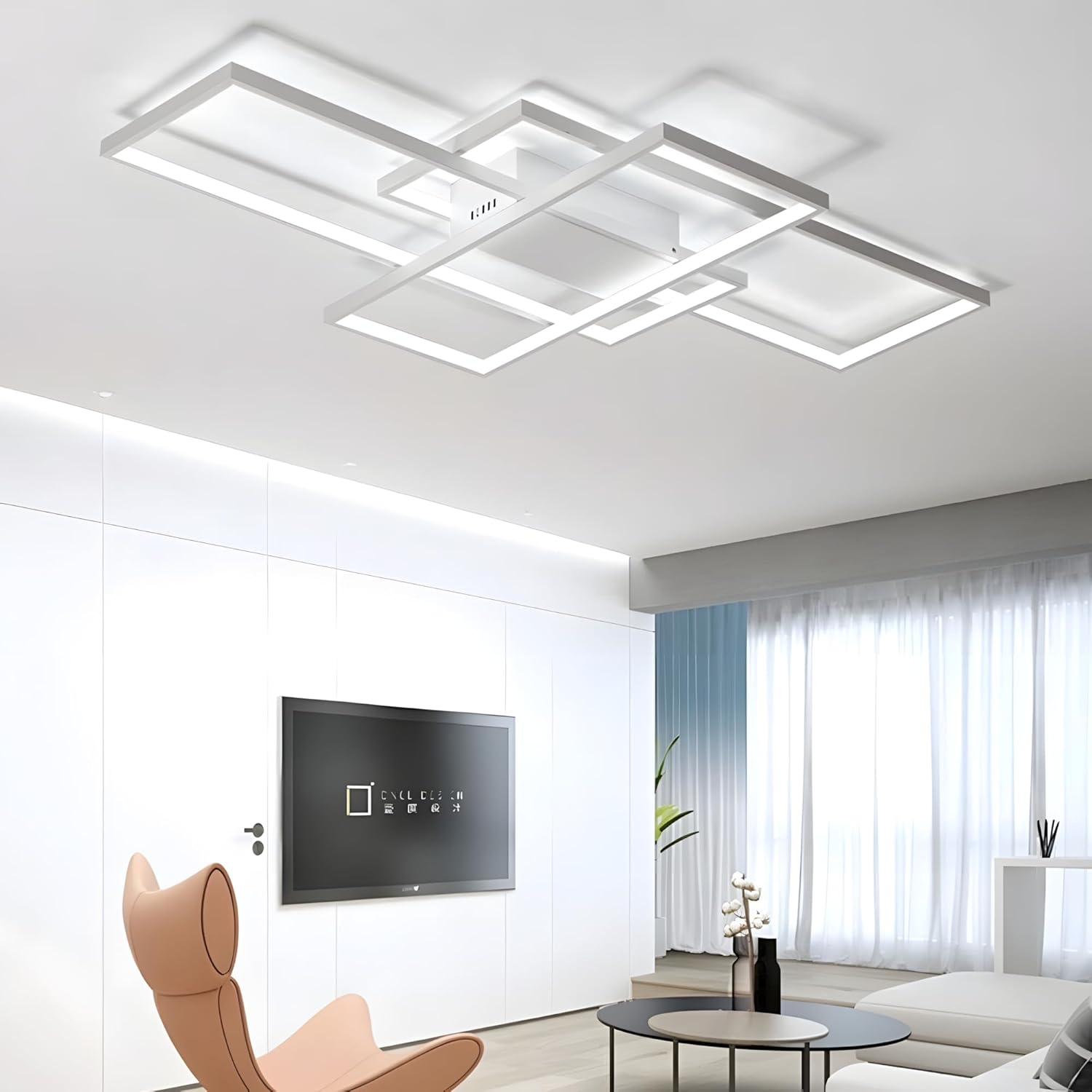 La plafoniera Geometrica è un'opzione di illuminazione moderna e dinamica, caratterizzata da una composizione di rettangoli sovrapposti che crea un effetto visivo audace e originale. Perfetta per ambienti come soggiorni, uffici o sale da pranzo, offre un’illuminazione uniforme grazie alla tecnologia LED integrata, garantendo risparmio energetico e una luce piacevole.