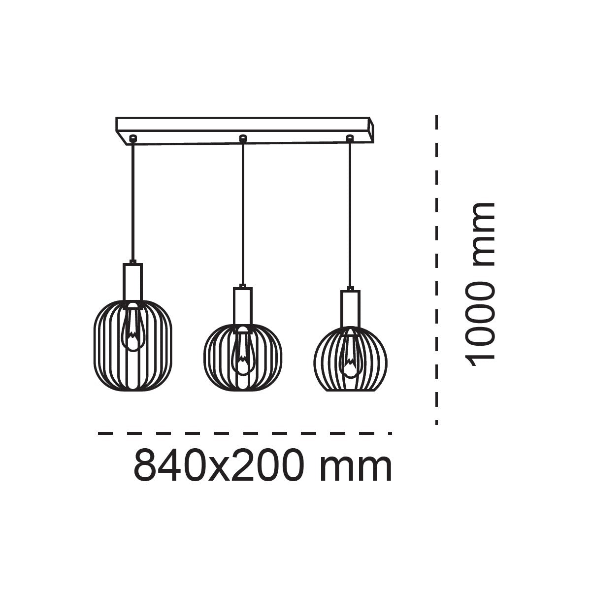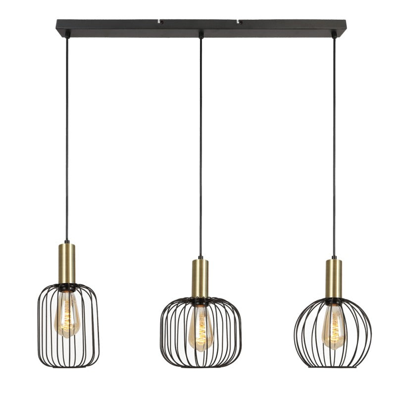 Questa sospensione a tre pendenti è caratterizzata da un design industriale e moderno, con eleganti gabbiette metalliche che avvolgono le lampadine, creando un effetto visivo unico. Ideale per ambienti come soggiorni, cucine o locali, offre un'illuminazione diffusa e decorativa. La disposizione regolabile dei pendenti permette di adattarla a diversi spazi e altezze, rendendola un elemento funzionale e di grande impatto estetico.